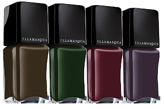 I am absolutely in love with the varnishes in the collection. A gorgeous selection of autumnal colours that are striking and unique. I like how they have an almost matte like appearance to them and are not to glossy which fits in with the dark, 1920's feel to the collection. They are warm colours and glide on easily and can be worn even after one coat as they have a strong colour depth. Fantastic. I have been wearing the green one 'Kink' constantly, but actually quite like them all together as they are here and in the tutorial also.